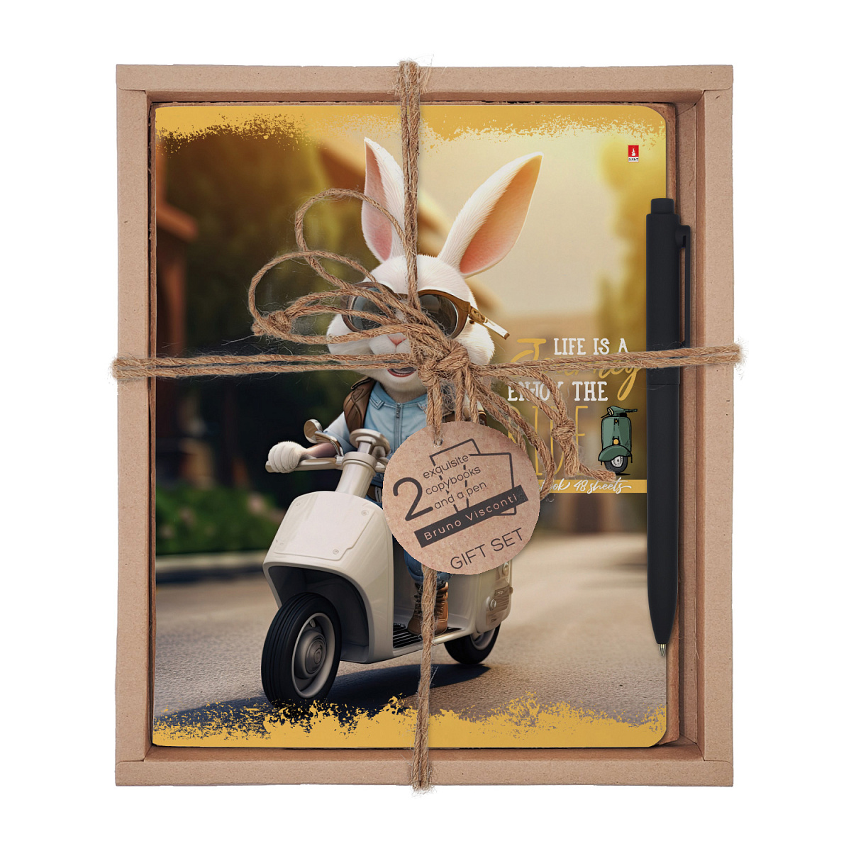 НАБОР ПОДАРОЧНЫЙ "ПУШИСТЫЙ БАЙКЕР. На отдыхе" (ДВЕ ТЕТРАДИ И РУЧКА)