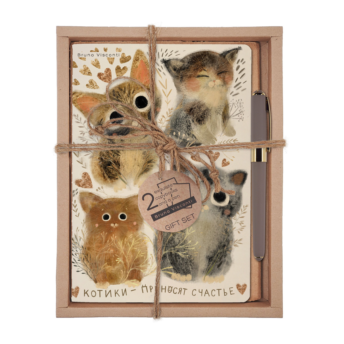 НАБОР ПОДАРОЧНЫЙ "КОТИКИ. СЧАСТЬЕ" (ДВЕ ТЕТРАДИ BV И РУЧКА)
