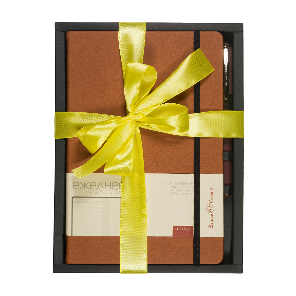 НАБОР ПОДАРОЧНЫЙ А5 "MEGAPOLIS VELVET" (СВЕТЛО-КОРИЧНЕВЫЙ ЕЖЕДНЕВНИК И РУЧКА)