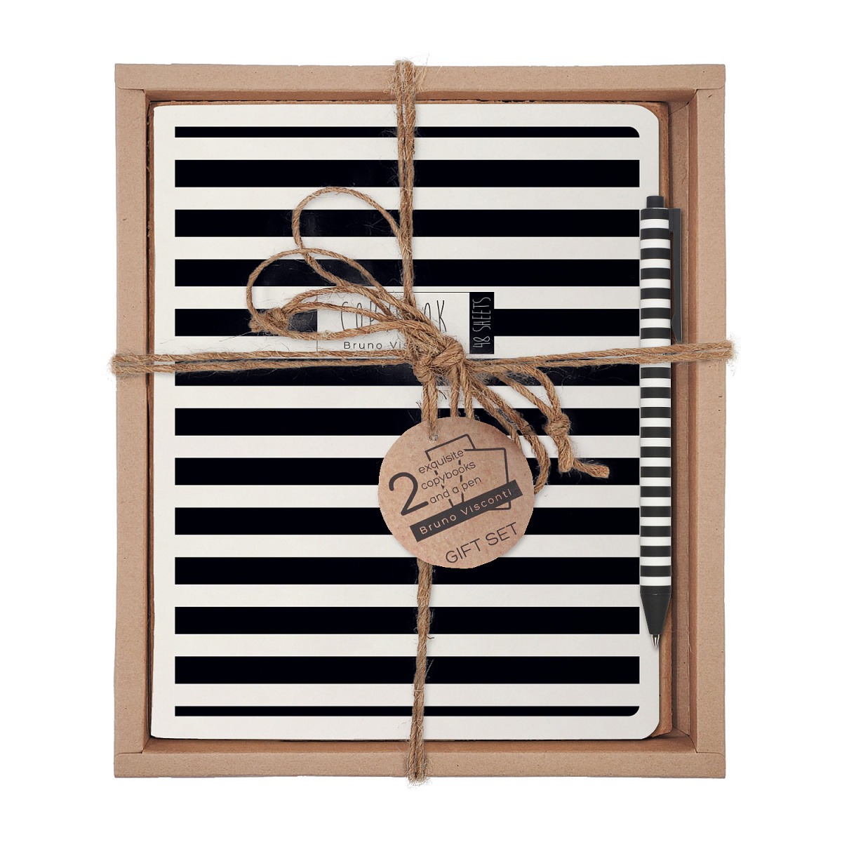 НАБОР ПОДАРОЧНЫЙ "BLACK&WHITE. NEW. Полоски" (ДВЕ ТЕТРАДИ И РУЧКА)