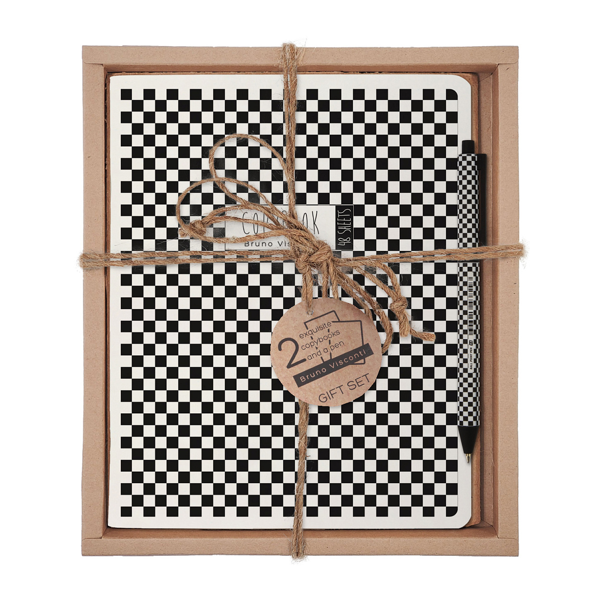 НАБОР ПОДАРОЧНЫЙ "BLACK&WHITE. NEW. Мелкая клеточка" (ДВЕ ТЕТРАДИ И РУЧКА)