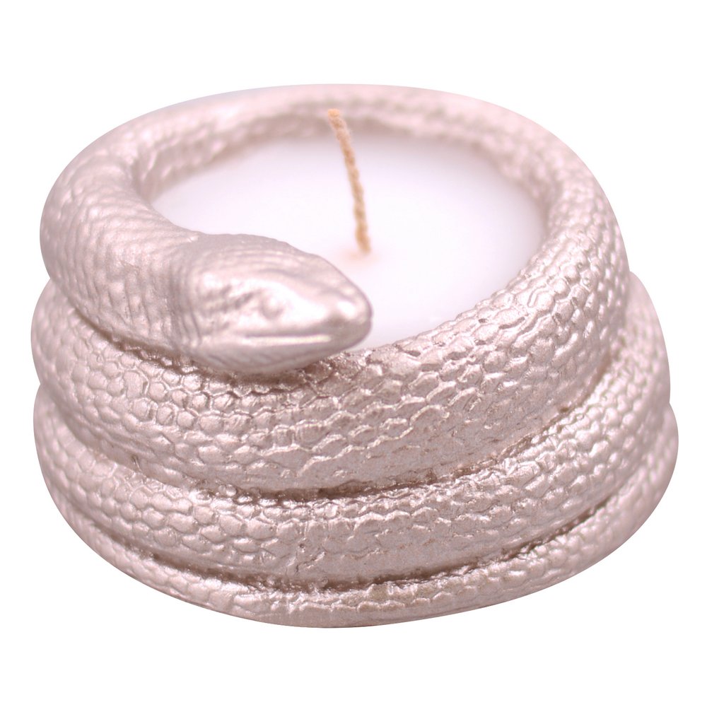 Свеча декоративная с подсвечником "Змейка". Размер 7,5х7,5х4 см. Материал: Парафин, Текстиль (Хлопок), Гипс, Краситель