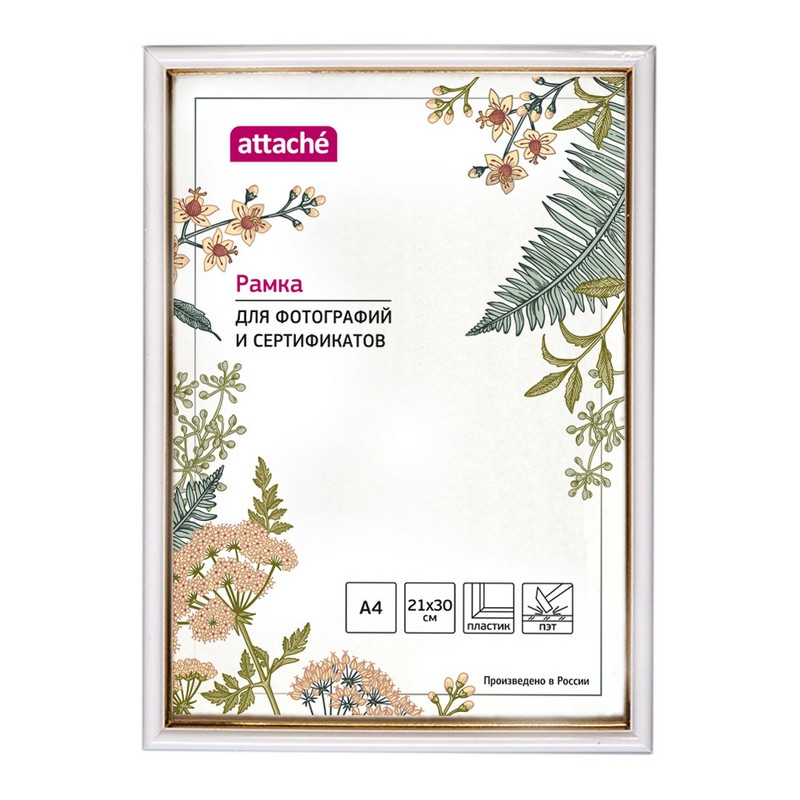 Рамка пластиковая Attache 21x30 (A4) ПЭТ Белая с золотом