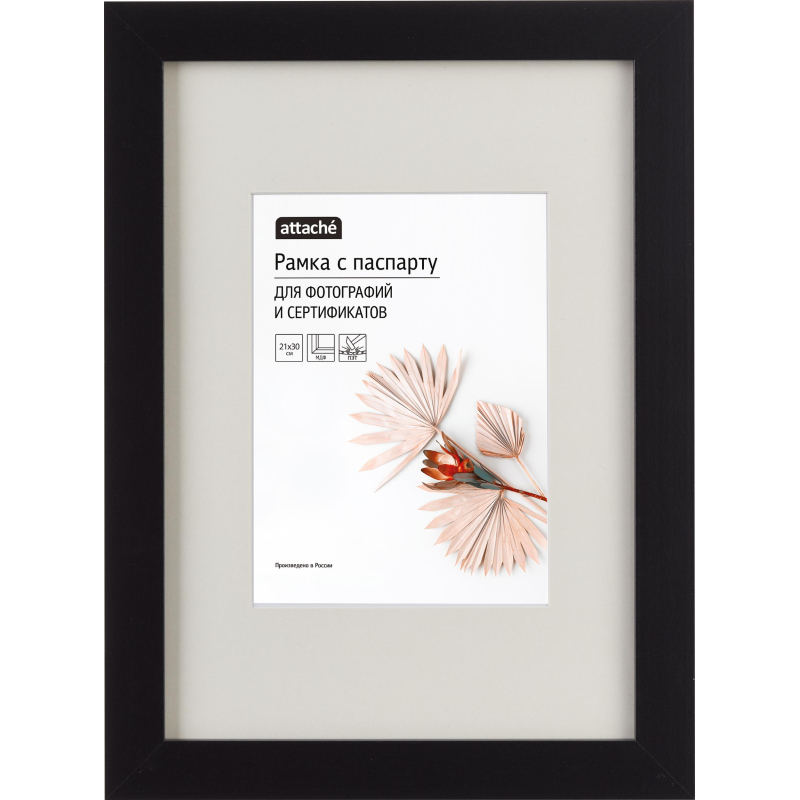 Рамка с паспарту МДФ, 21х30, черная