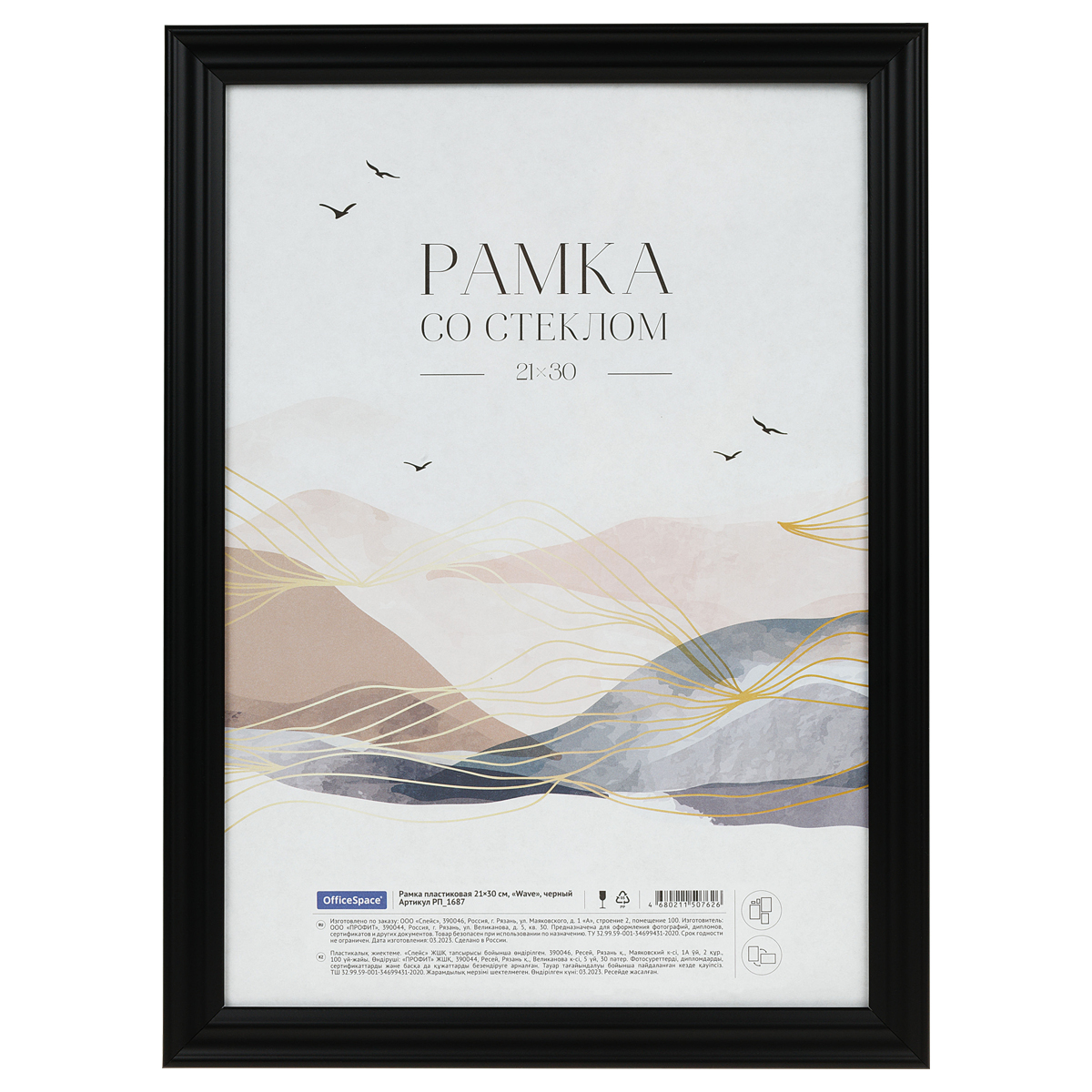 Рамка пластиковая 21*30см, OfficeSpace "Wave", черная