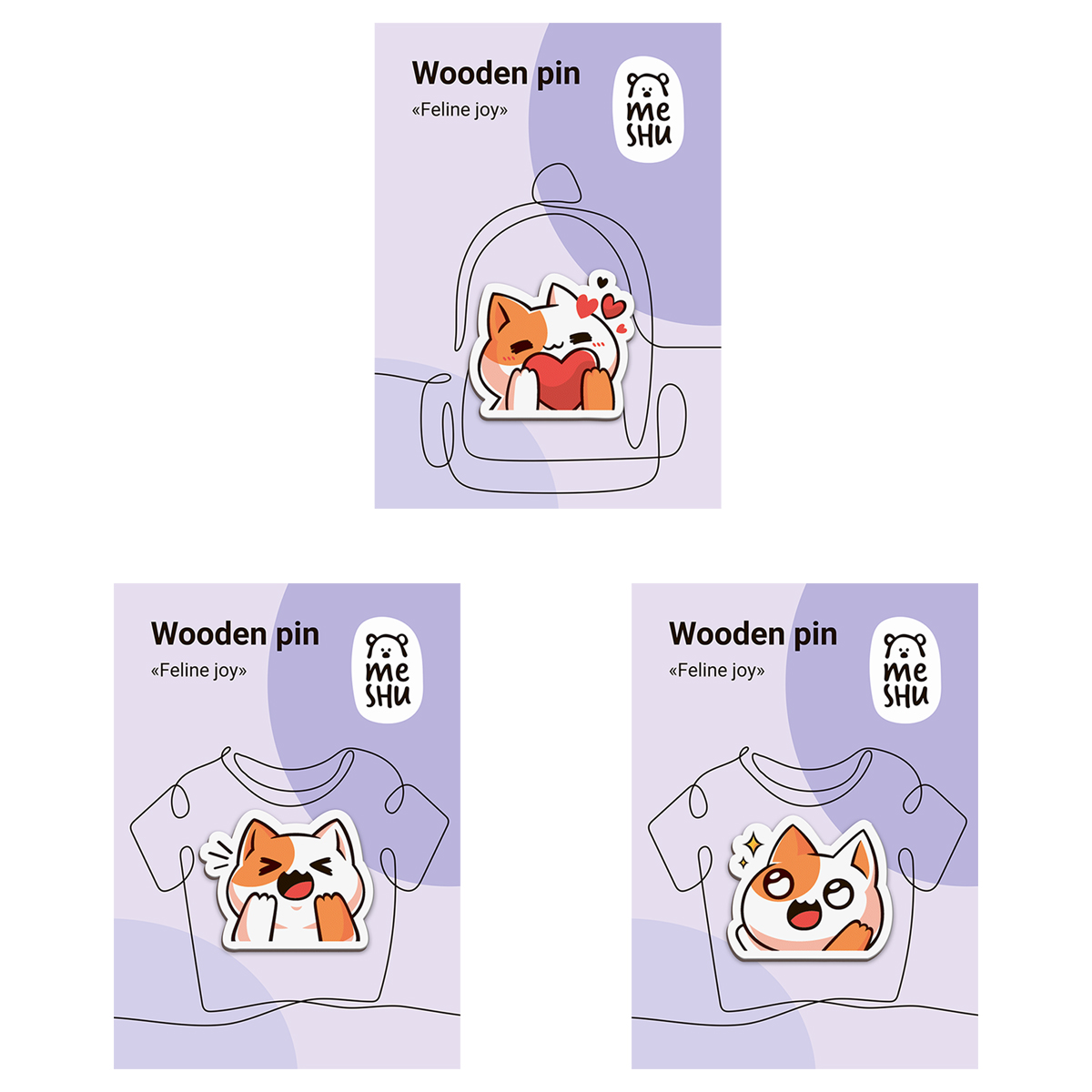 Набор деревянных значков MESHU "Feline joy", каширование, 3шт.