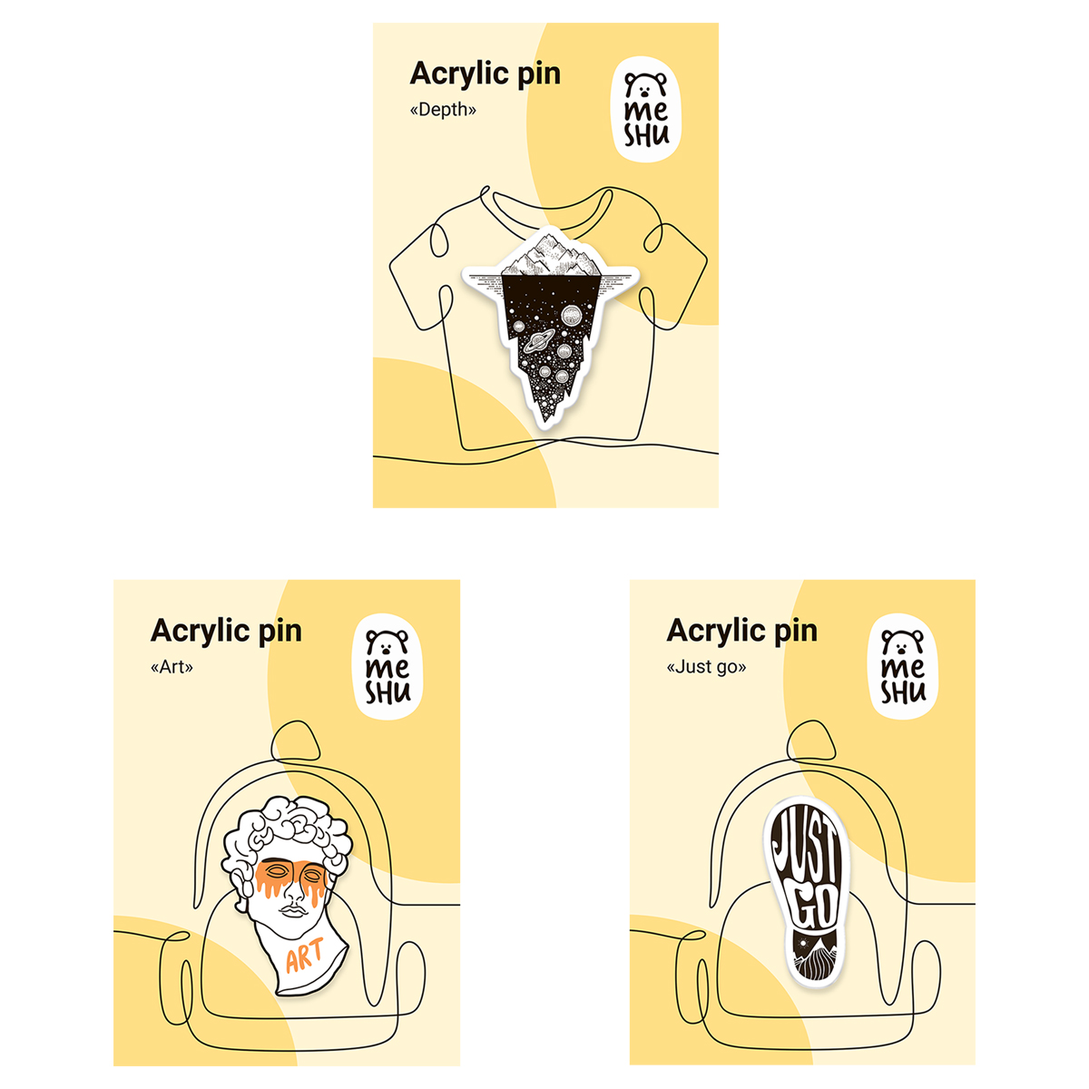 Набор акриловых значков MESHU "Art therapy", прямая УФ-печать, 3шт.