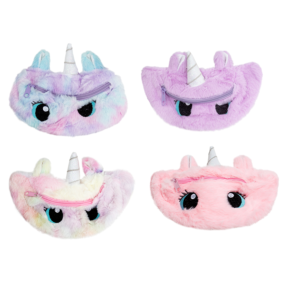 Мягкая детская поясная сумочка, выполненная в образе единорога. Сумочка имеет одно отделение, застегивается на молнию. Длина ремешка регулируется от 49 до 82 см, ремешок оснащен застежкой фастекс. 4 цвета в ассортименте: розовый, фиолетовый, розовый с фиолетовыми и голубыми пятнышками, фиолетовый с розовыми и голубыми пятнышками. Материал сумочки – полиэстер, материал ремешка – полипропилен. Размер сумочки – 26*14*2 см. Индивидуальная упаковка – п/э пакет. Размер в упаковке – 14*16,5*5 см.