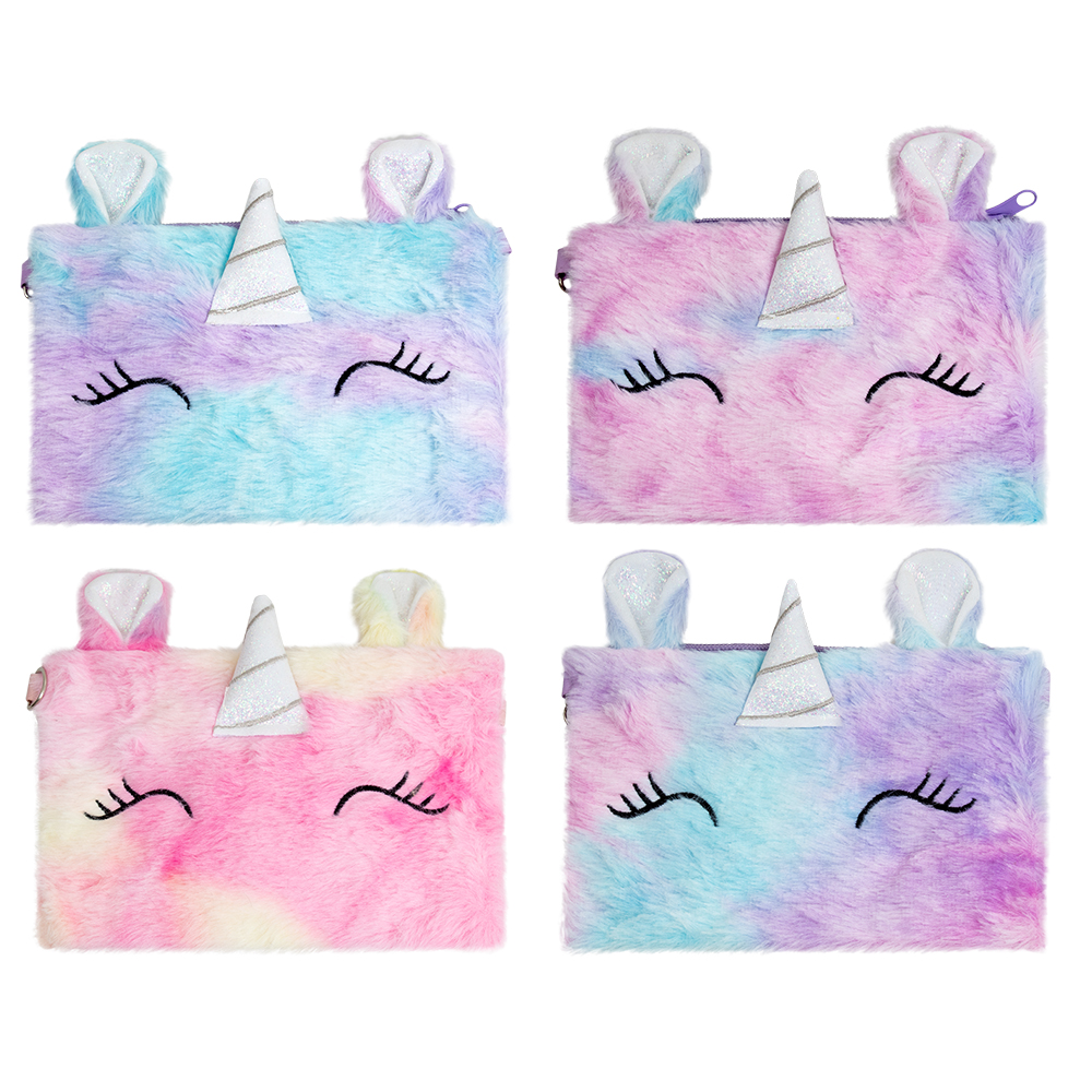 Мягкая детская сумочка, выполненная в образе единорога. Сумочка имеет одно отделение, застегивается на молнию. Длина ремешка регулируется от 53 до 102 см, что позволяет носить сумочку на плече или через плечо, ремешок отстегивается. 3 цвета в ассортименте: розовый, голубой, фиолетовый. Материал сумочки – полиэстер, материал ремешка – ПВХ. Размер сумочки – 20*17*1,5 см. Индивидуальная упаковка – п/э пакет. Размер в упаковке – 20,5*17*2,5 см.