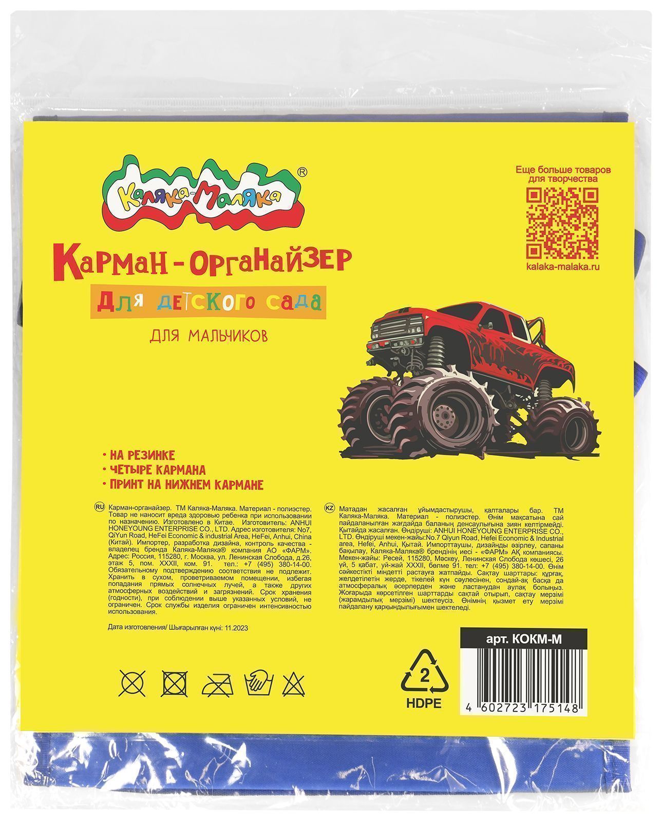 Кармашки-органайзер в шкафчик для детского сада Каляка-Маляка 4 кармана 80x24 см, голубой
