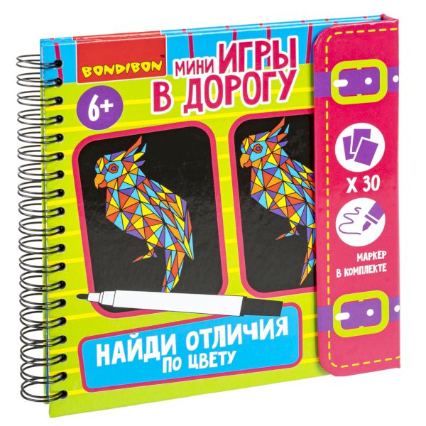 Мини-игры в дорогу "НАЙДИ ОТЛИЧИЯ ПО ЦВЕТУ" со стирающимся маркером Bondibon