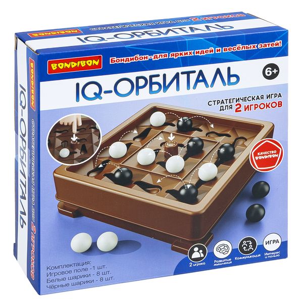 Для мастеров игры в КРЕСТИКИ – НОЛИКИ! Стратегическая игра Bondibon IQ-ОРБИТАЛЬ бросает новый вызов навыкам стратегического планирования. Эта соревновательная и развлекательная игра ставит перед игроками задачу собрать 4 шарика своего цвета по вертикали, горизонтали или диагонали. В свой ход игрок добавляет один шарик на игровое поле, стремясь к победе. Особенностью игры является то, что после каждого хода все шарики меняют свое положение, перемещаясь против часовой стрелки по внутренней и внешней орбите. Для завершения хода и оценки результата необходимо нажать на кнопку в центре игрового поля. Это добавляет динамичности и неожиданности в игру, делая каждую партию уникальной и захватывающей. В набор входит игровое поле, 8 белых шариков и 8 чёрных шариков. Настольная игра Bondibon IQ-ОРБИТАЛЬ развивает логическое мышление, навыки стратегического планирования и внимательность, а также приносит много удовольствия и веселья. Для 2 игроков. 6+