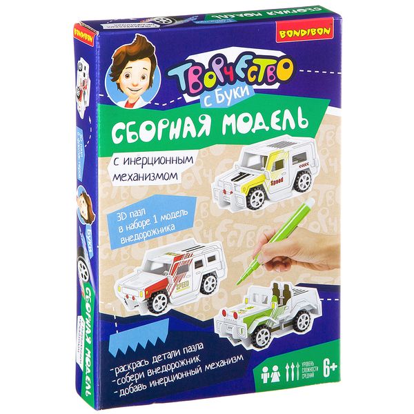 Сборная 3D модель BONDIBON для раскрашивания, с инерц мех., внедорожник, арт. 2613C-N