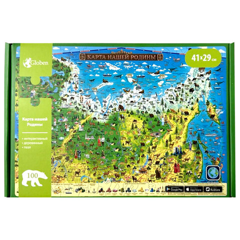 Интерактивная карта-пазл "Карта нашей Родины" от GLOBEN знакомит детей с многообразием народов России и стран СНГ, уникальной природой разных климатических зон, а также важными историческими событиями и географическими открытиями. Пазл состоит из 100 деталей, каждая из которых уникальна. Детали вырезаются высокоточным лазером – это гарантирует идеальную подгонку элементов и ровные кромки, поэтому пораниться невозможно.Интерактивные помощники расскажут об особенностях ландшафта, достопримечательностях разных городов, животных и растениях, важных исторических событиях, путешественниках и исследователях, а также о народах, населяющих Россию и соседние государства.