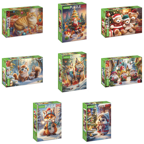 Пазл картонный НОВОГОДНИЙ 260 элементов АССОРТИ, 220х330 мм, HATBER