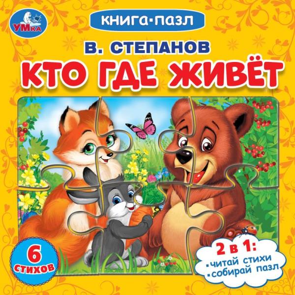 Кто где живет. Степанов В.А. Картонная книга с 5 пазлами. 160х160 мм. 10 стр. Умка