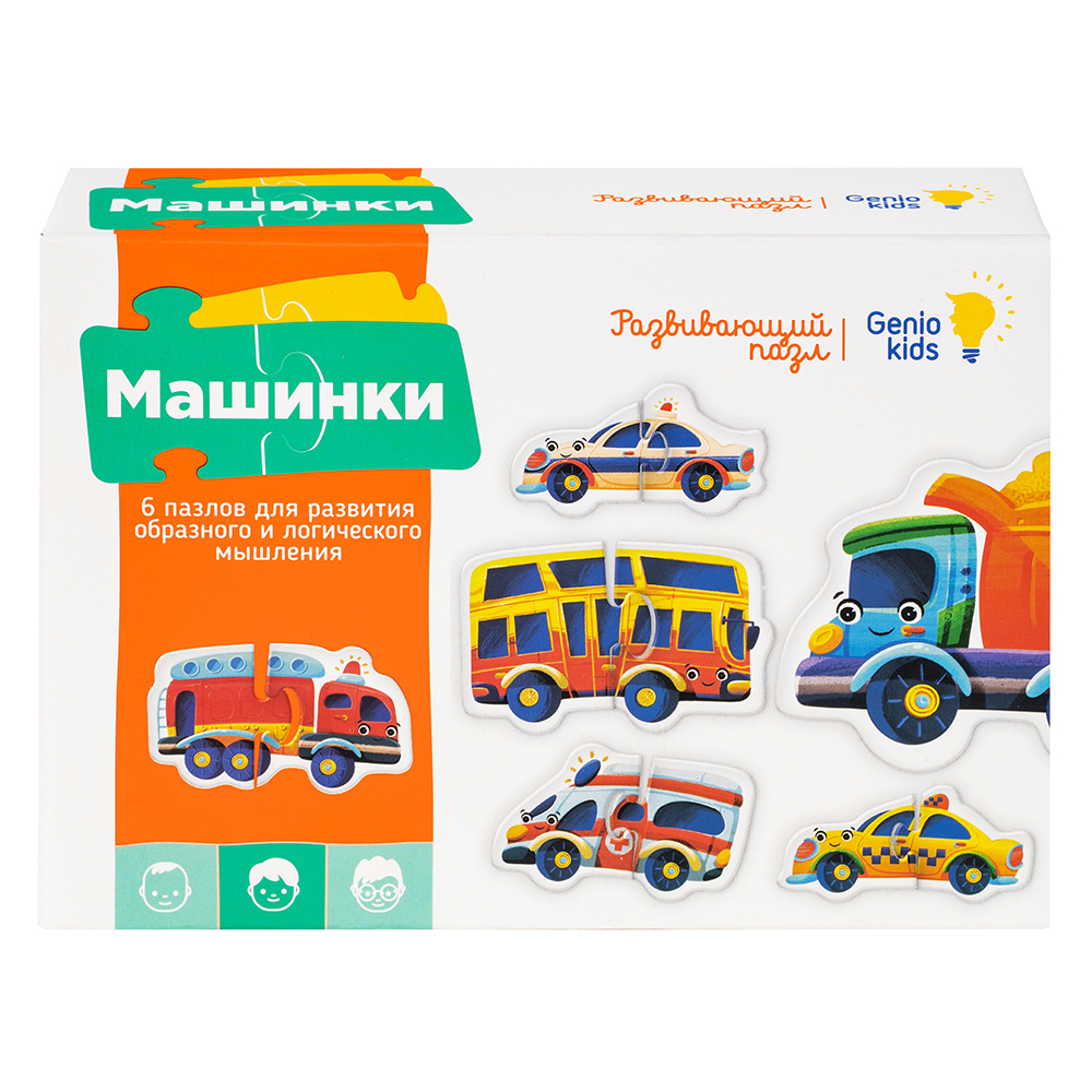 Пазл "Машинки" - простые развивающие пазлы увеличенного размера (MAXI) для самых маленьких. Ребёнку необходимо соединить две детали, верно соотнеся содержание. Пазл развивает образное и логическое мышление. В процессе игры ребёнок учится различать элементы по цвету и форме, тренируется умение находить связь между частью и целым. Пазлы знакомят ребёнка с разными видами машин специального назначения. Комплектация: элементы пазлов: 12 шт.