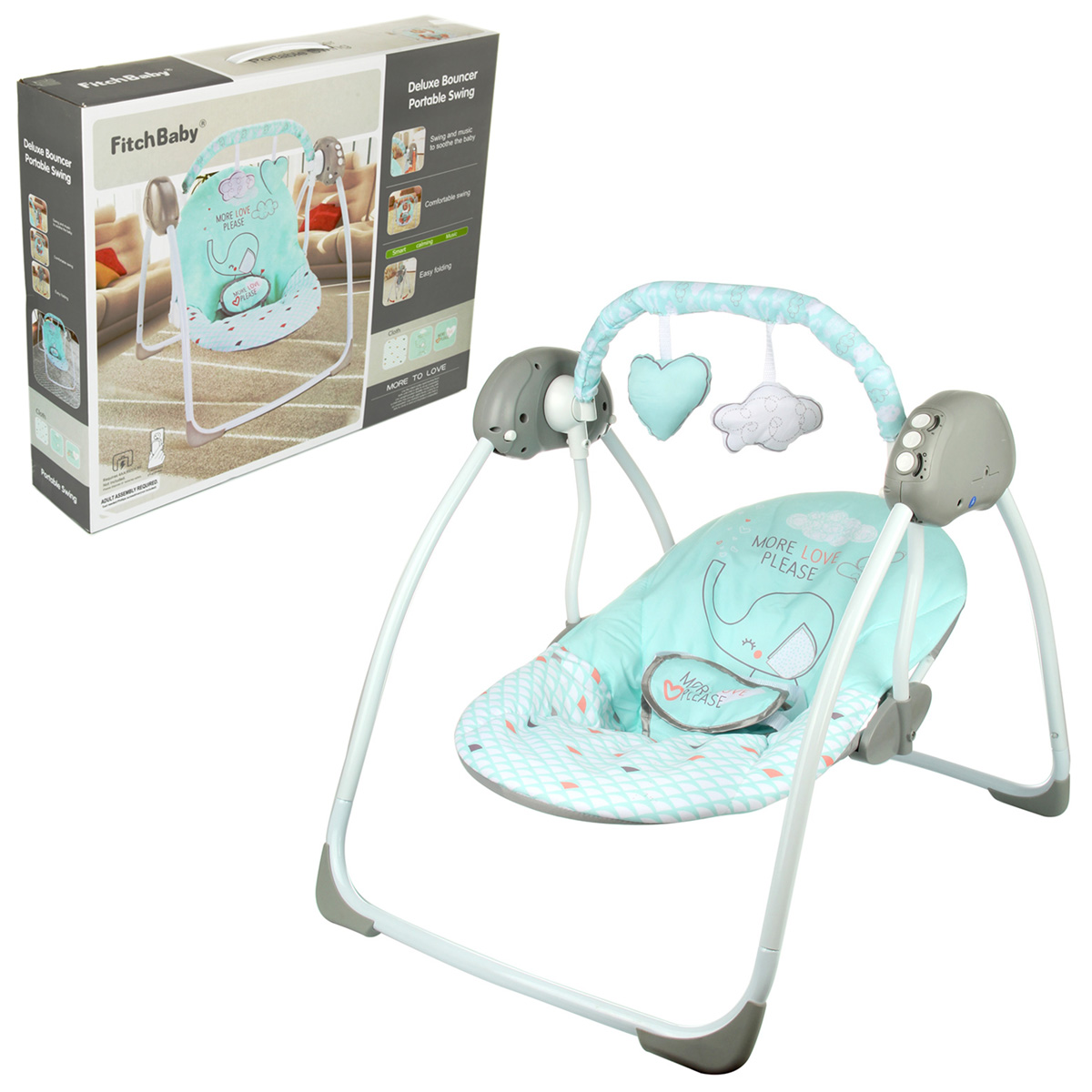Шезлонг детский, это четыре полезных приобретения в одном, шезлонг, кресло, электрокачели и музыкальная игрушка. Шезлонг для новорожденных с колыбельными и функцией автоматического выключения качелей, возможность работы от сети и от батареек. Анатомическая форма сиденья, регулировка спинки, надежная и продуманная конструкция, мягкие подвесные игрушки. Электрокачели детские с подвесными игрушками изготовлены из прочных и долговечных материалов, текстильные элементы выполнены в приятной красивой расцветке. Люлька для новорожденных имеет эргономичный дизайн, в разобранном виде удобно хранить в коробке, занимает мало места. Электрокачели для дома и дачи, можно поставить детское кресло шезлонг на свежем воздухе. Надежные застежки, умная конструкция шезлонга, высокое качество исполнения и безопасные материалы делают этот товар для новорожденных прекрасным подарком. В комплекте детали для сборки шезлонга, 2 подвесные игрушки, блок питания, инструкция на русском языке. Электрокачели напольные для младенцев имеют функционал. 1. Регулировка спинки, раскладываем сиденье в люльку, поднимаем спинку, делаем кресло. 2. Кнопка стрелочки, включает и выключает покачивание качелей, 3 режима. Повторным нажатием кнопки можно увеличить и уменьшить скорость покачивания. Есть индикатор подсветки, показывающий, когда качели работают. 3. Кнопка ноты. Проигрывает колыбельные и издает звуки природы, более 3 колыбельных. Повторные нажатия кнопки увеличивают уровень громкости, выключают звук или колыбельную. Если не совершать действий с кнопкой, колыбельная доиграет, включится следующая. Хорошее качество звука. 4. Кнопка L, таймер для автоматического выключения электрокачелей. Используйте кнопку, чтобы установить необходимое время работы, 15, 30, 45 минут. 5. Есть трехточечный ограничитель. Длина лямок регулируется, ремни можно расстегнуть. 6. Жесткая конструкция каркаса. Сиденье с мягким наполнителем, удобно снять и постирать. 7. Подвесные игрушки мягкие. 8. Два типа работы, от батареек и сети. Вынимаем батарейки, вставляем блок питания в розетку и качели, качели работают от сети. Дуга для игрушек не предназначена для переноски. Работает от 4 батареек АА, не входят в комплект, и от сети, блок питания входит в комплект. Каркас металл, полимер, подкладка текстиль. Максимальный вес ребенка 9 кг. Среднее время проигрывания колыбельной около 40 секунд. Размеры шезлонга с разложенной люлькой 75х57х64 см. Размеры сиденья со спинкой 44х41х44 см. Размеры сиденья в разложенном виде, люлька 67х41 см. Глубина люльки 14 см. Размеры игрушки без учета подвески 12х3х8 см. Размеры коробки 56х12х46 см.