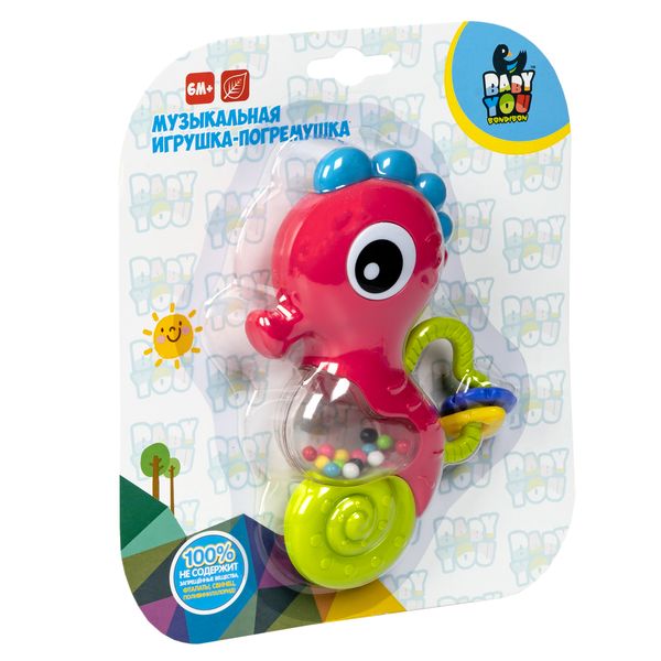 Игрушка-погремушка МОРСКОЙ КОНЁК, Bondibon, музыкальная, на батарейках