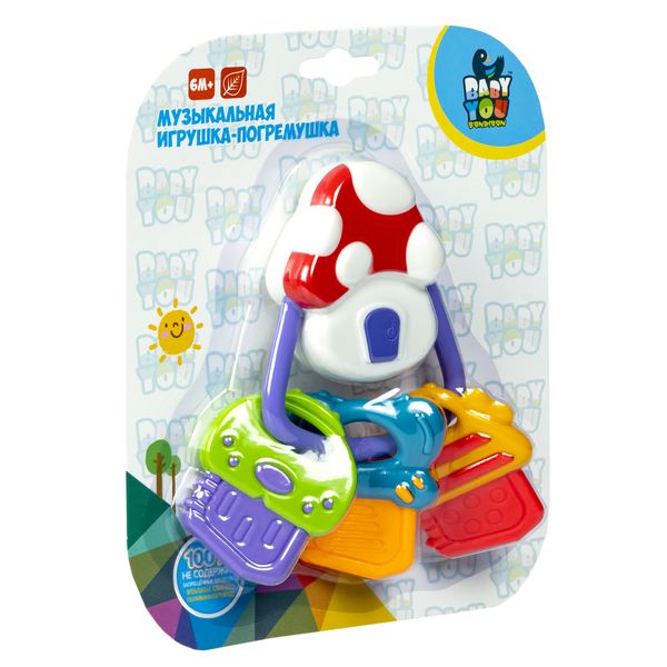 Развивающая погремушка КЛЮЧИКИ серии BabyYou Bondibon – забавная музыкальная пластмассовая игрушка, которая очень понравится малышу и отвлечет его внимание от настоящих ключей. Тем более, что эти КЛЮЧИКИ умеют исполнять целых 5 мелодий – только нажмите кнопку! Погремушка развивает мелкую моторику, координацию движений, учит ребенка фокусировать взгляд и слух. Просто отдайте эту игрушку малышу – и он сам достаточно быстро разберется, как с ней обращаться. Покажите, как работает кнопка на брелке, дайте ребенку самостоятельно освоить новый для него навык – и радости не будет предела. Круглое кольцо фиксатор может помочь при прорезывании зубов, забавные звуки развлекут и заинтересуют малыша. Погремушка для новорожденного сделана из прочной пластмассы, модель рассчитана на долговременное использование. В комплект входят 3 батарейки AG13. Возраст: 6 месяцев +