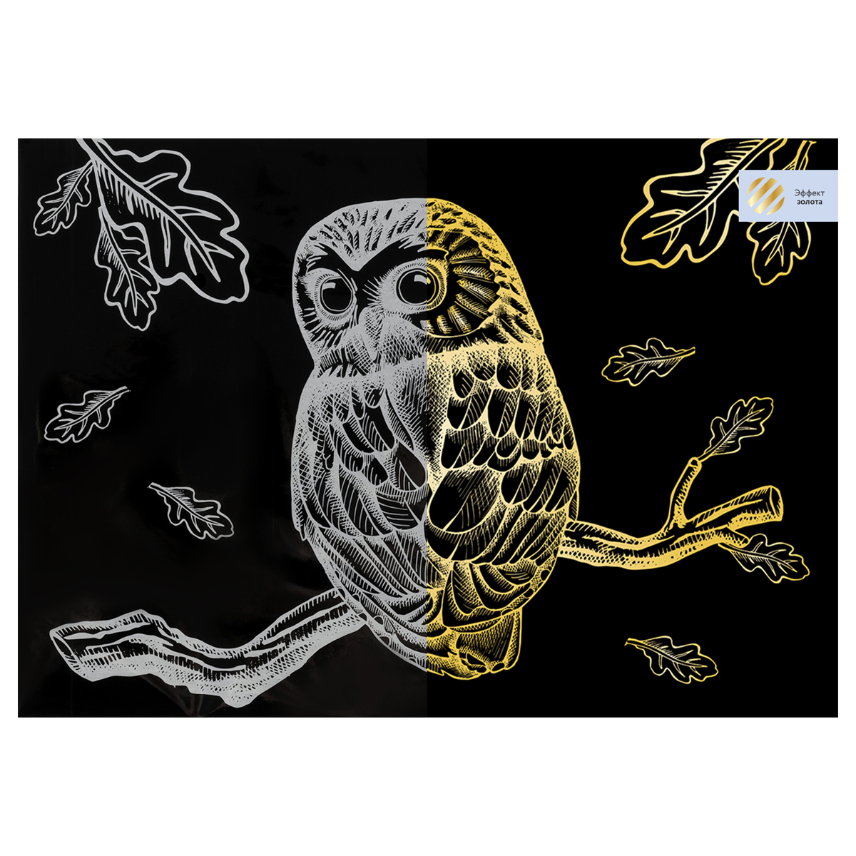 Гравюра с эффектом золота ТРИ СОВЫ "Сова", А4