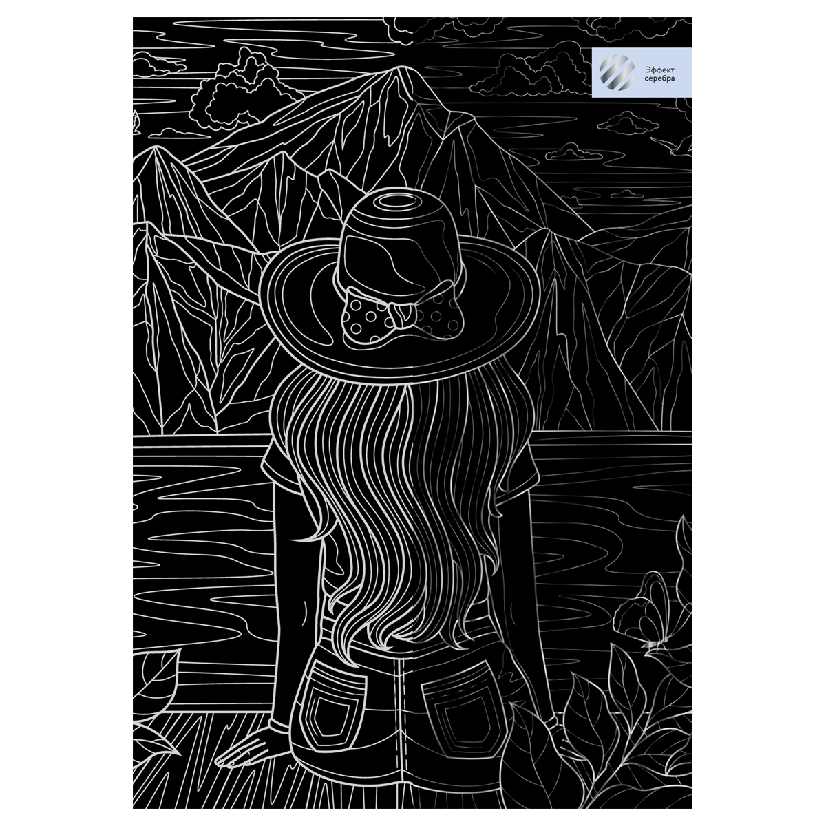 Гравюра с эффектом серебра ТРИ СОВЫ "Девушка. Антистресс", А4