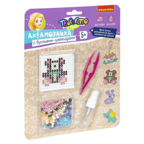 Набор для творчества BONDIBON. Аквамозаика с бусинами-цилиндрами "У мишки День Рождения" Создайте яркую подвеску-брелок своими руками вместе с набором для творчества аквамозаика "У мишки День Рождения" от Bondibon. Серия Творчество с Буки развивает художественный вкус, мелкую моторику и воображение ребенка. Поместите цветную схему под трафарет и выложите на него бусины, смочите водой из распылителя, дайте высохнуть. Снимите получившуюся фигурку и положите ее на чистый лист бумаги до полного высыхания. Прикрепите подвеску, чтобы получился брелок. Готово! В результате у Вас получатся уникальные персонажи, которые пришли на праздник: мишка, зайчик, слоник и сказочный торт. В комплекте: цветные шарики, пластиковая основа, распылитель воды, карточки-трафареты, пинцет и подвески для брелоков. Рекомендуемый возраст 5+. Набор для творчества аквамозаика "У мишки День Рождения" от Bondibon – это отличный способ для ребенка провести время с интересом и пользой и создать удивительную поделку своими руками.
