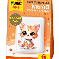 Набор для мыловарения ТРИ СОВЫ "Котик в пончике", 1 мыло с картинкой, картонная коробка