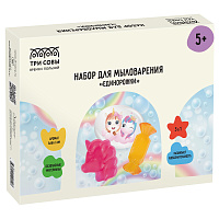 Набор для мыловарения 3в1 ТРИ СОВЫ "Единорожки", 1 мыло с картинкой, 2 классических мыла, картонная коробка