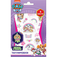Наклейки - татуировки светящиеся "Щенячий патруль", 3 листа, дизаин 3