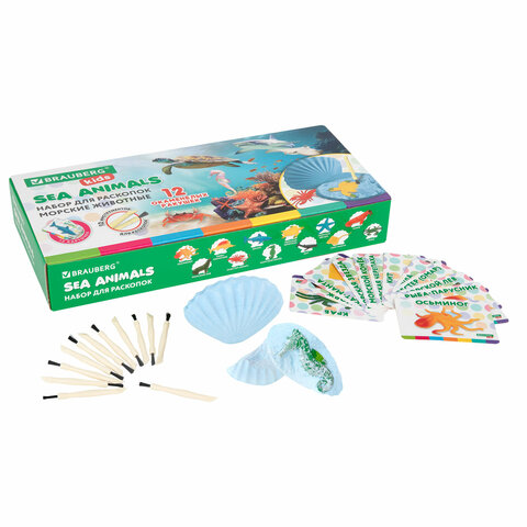 Набор для проведения раскопок BRAUBERG KIDS – это необычный и увлекательный набор из гипсовых ракушек с морскими животными. Набор поможет узнать, как они выглядят, и изучить их особенности на ярких карточках. Все необходимые инструменты в наборе. В набор входят 12 гипсовых блоков в форме ракушки с морскими животными внутри, 12 инструментов для проведения раскопок (долото с кисточкой), 12 красочных двусторонних карточек с информацией о каждом животном из набора. Виды морских животных в наборе: осьминог, морской лев, рыба-парусник, лобстер (омар), акула, морской конёк, морская черепаха, кит, морская звезда, скат-манта, морж, краб.Как играть: возьмите ракушку и удобно расположите для работы на поверхности. Возьмите долото и начинайте процесс раскопок. Когда появится какая-то часть морского животного, лишний гипс можно смахнуть кисточкой. После полного освобождения игрушки нужно по картинке опознать животное и прочитать информацию о нём на обратной стороне карточки. Таким образом, ваш ребенок будет не только увлечен процессом раскопок, но и получит ценную информацию о каждом морском животном из набора. Чтобы легче извлечь игрушку из ракушки, его можно поместить в воду на 15-20 минут для размягчения гипса.
