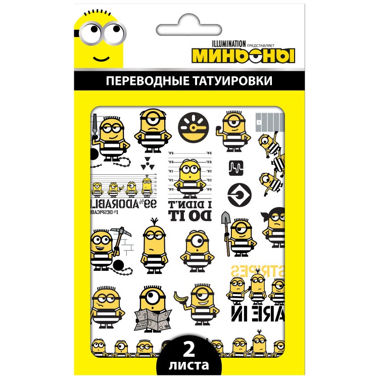 Наклейки - татуировки «Миньоны», 2 листа, дизайн 3