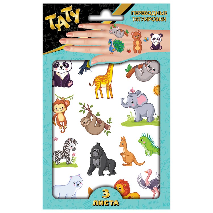 Наклейки - татуировки "Милые зверята", 3 листа