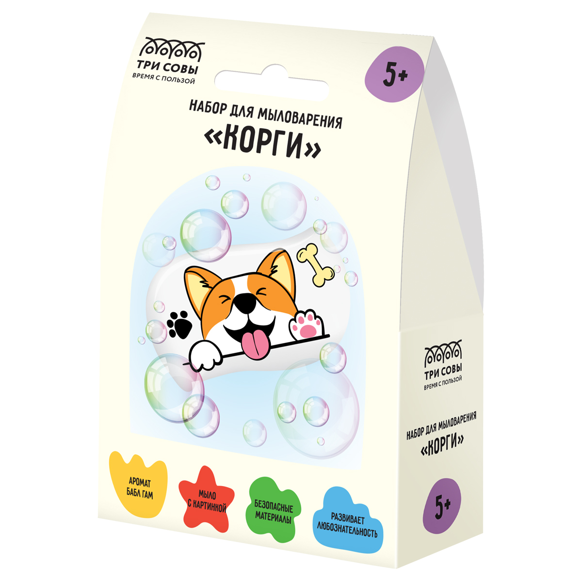 Набор для мыловарения ТРИ СОВЫ "Корги", 1 мыло с картинкой, картонная коробка