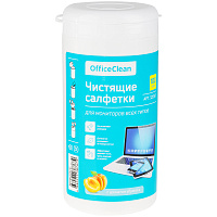 Салфетки чистящие влажные OfficeClean, для мониторов всех типов, в тубе, с ароматом абрикоса, 100шт.