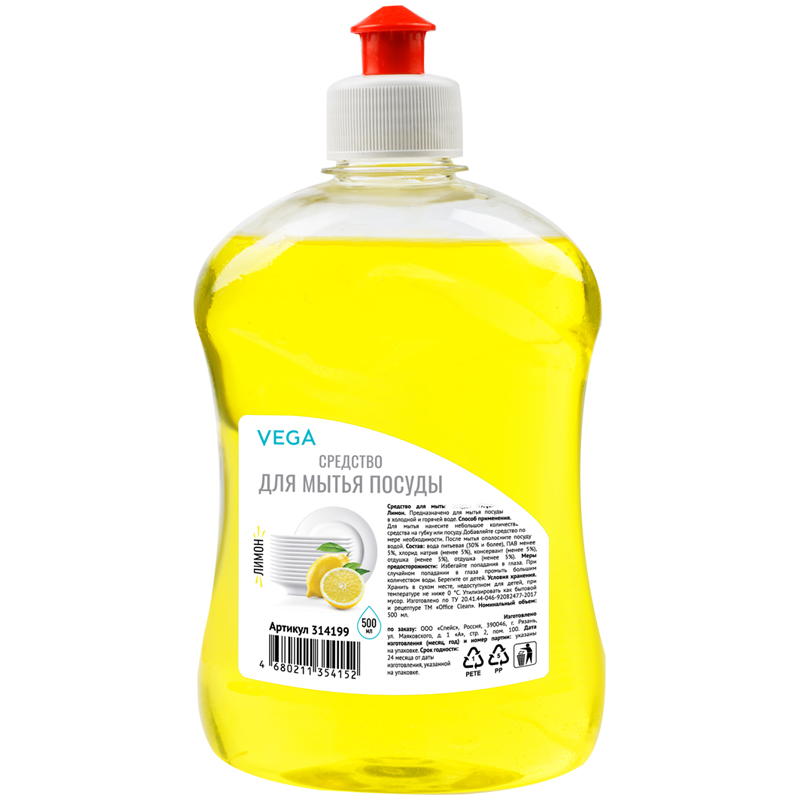 "Средство для мытья посуды Vega ""Лимон"", пуш-пул, 500мл."