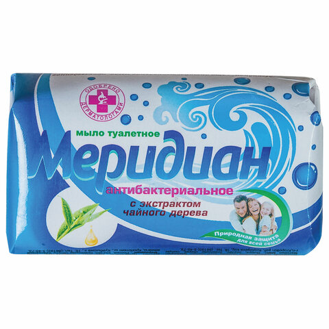 Мыло туалетное 100 г АНТИБАКТЕРИАЛЬНОЕ (Меридиан), экстракт чайного дерева, бумажная упаковка