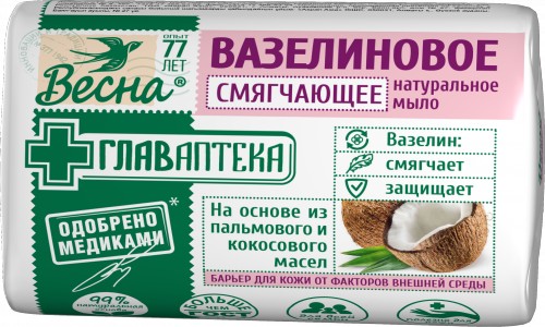 ВЕСНА Мыло туалетное твердое 90гр ГЛАВАПТЕКА Вазелиновое, 6 штук, арт. 1783