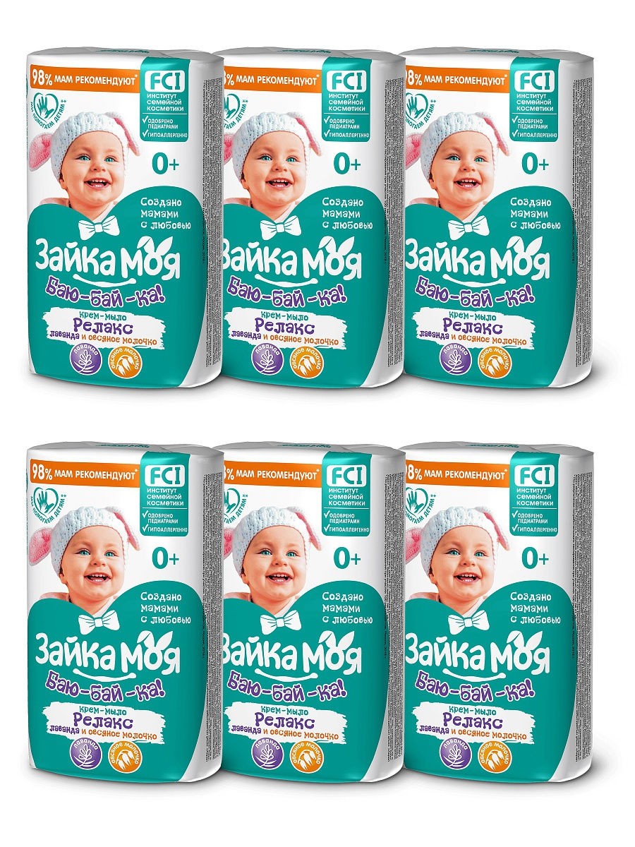 Состав вода 23%, глицерин 15%, натрия хлорид 7%, парфюмерная композиция 10%, натриевые соли жирных кислот пальмового масла 19%, натриевые соли жирных кислот кокосового масла 19%, тетранатрия эдта 7% Описание Мыло детское Баю-бай-ка, лаванда и овсяное молочко. Лаванда в детском мыле помогает малышу быстрее засыпать и спокойно спать, особенно при повышенной возбудимости и нарушениях сна. Овсяное молочко, входящее в состав мыла, сохраняет защитный барьер кожи младенца, предотвращая сухость, трещины и проявление аллергических реакций. Детское мыло это релакс. У мыла тонкий приятный травяной запах, при намыливании он усилился. Мыло отлично пенится. Мыло не сушит, очень бережно ухаживает. В комплекте 6 шт.
