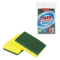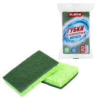 Губки для посуды 95x65х20 мм, ЦЕЛЛЮЛОЗНЫЕ + АБРАЗИВ, КОМПЛЕКТ 2 штуки, желтые/зеленый абразив, LAIMA, 700256
