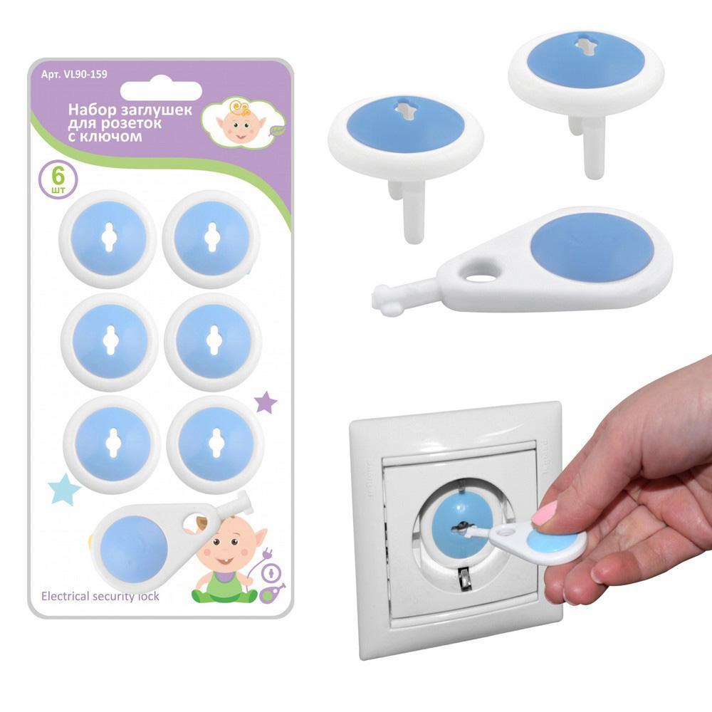 Набор заглушек для розеток с ключом. 6 штук