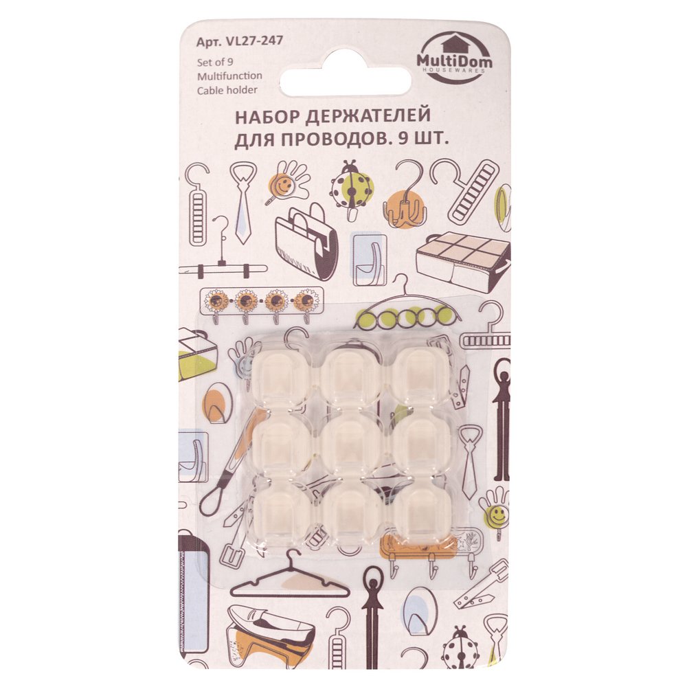 Набор держателей для проводов. 9 штук, размер 1,6х1,6 см.