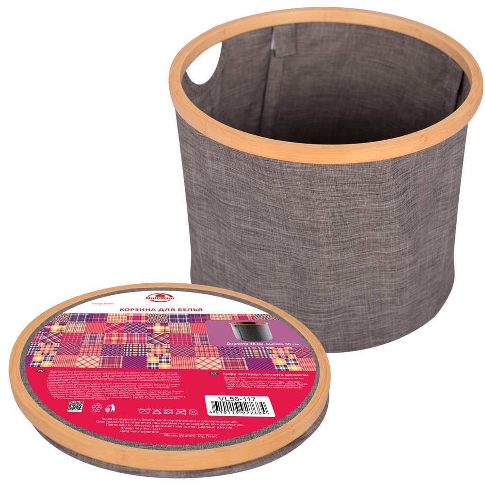 Кофр для хранения вещей. Диаметр 38 см, высота 30 см. Материал: Синтетический материал (Полиэстер), Дерево (Бамбук)