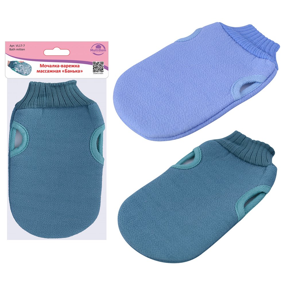 Мочалка-варежка массажная "Банька". Размер 13х22см, 2 цвета