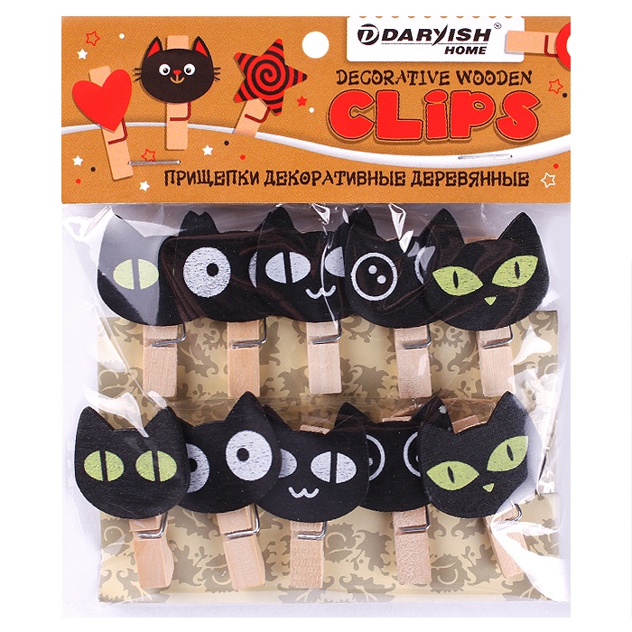 Прищепки декоративные деревянные 10шт/уп "Черный кот" (набор)