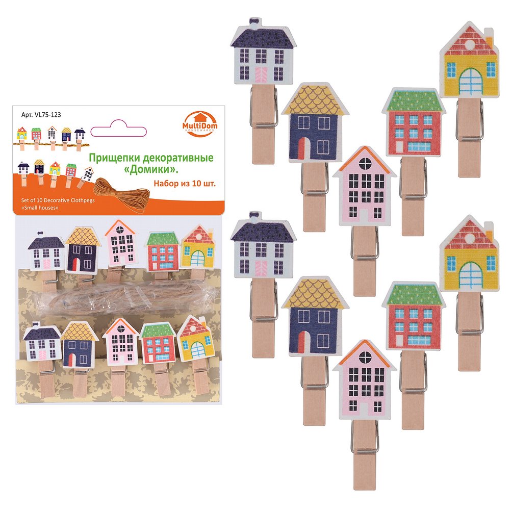 Прищепки декоративные "Домики". Набор из 10 штук. Общая длина 3,5см.