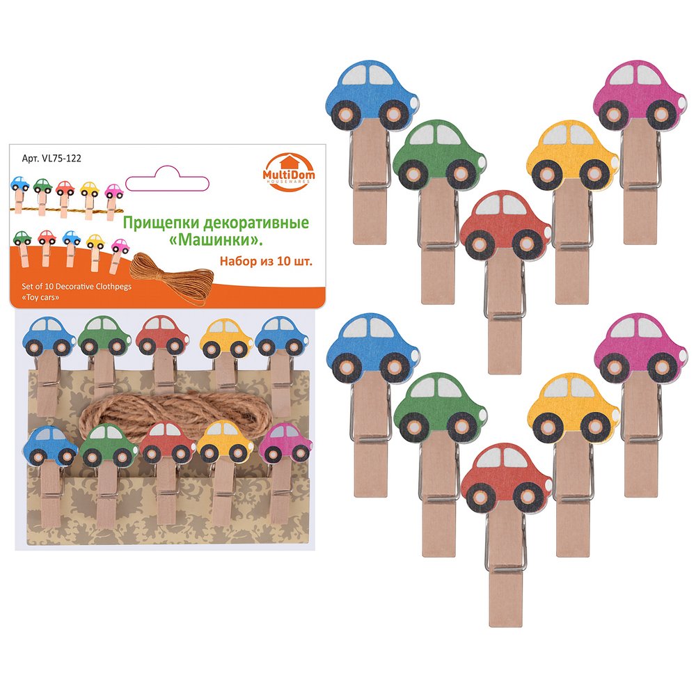Прищепки декоративные "Машинки". Набор из 10 штук. Общая длина 3,5см.