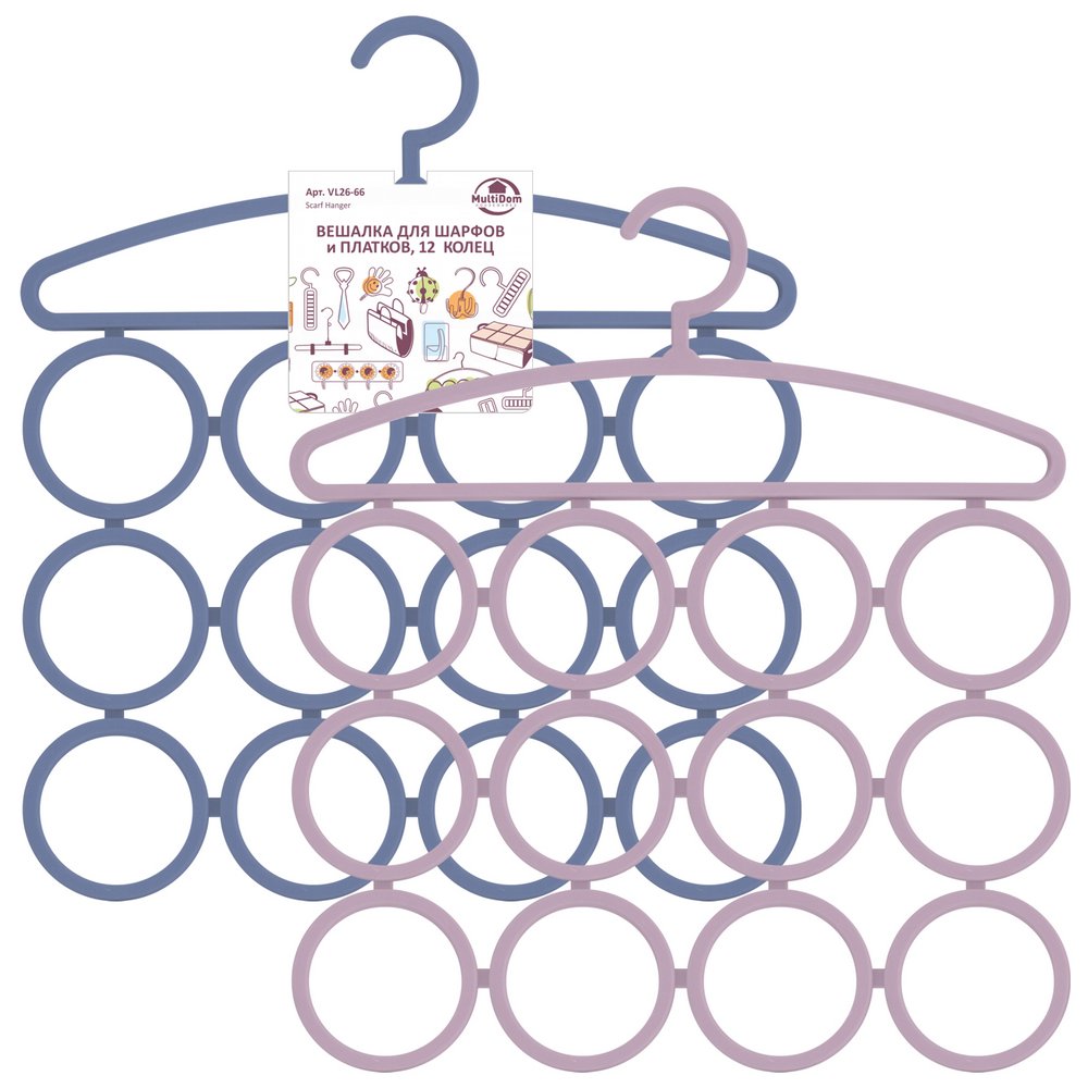 Вешалка для шарфов и платков, 12 колец. Размер 46,3х29,6 см. 2 цвета. Материал: Пластмасса (РР)
