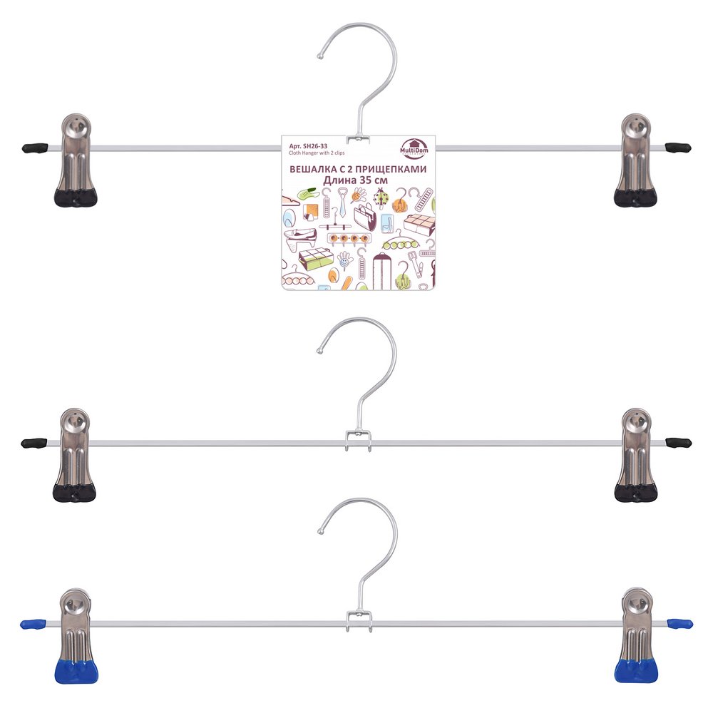 Вешалка металл с 2-мя прищепками L 35 см, 2 цвета