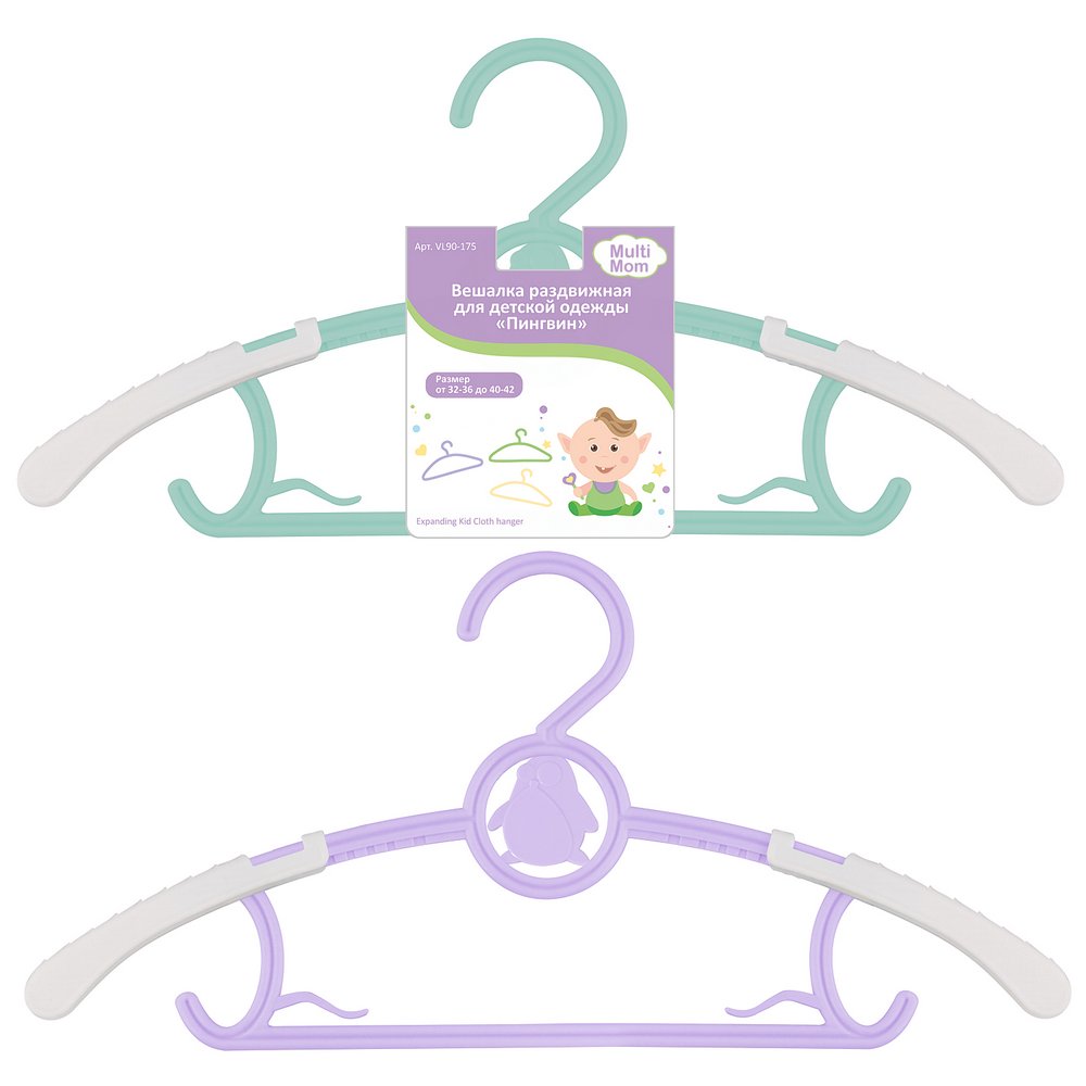 Вешалка раздвижная для детской одежды "Пингвин". Размер 32-42 см. 2 цвета. Материал: Пластмасса (РР)